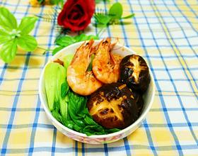 再把香菇、油菜放入煸炒。