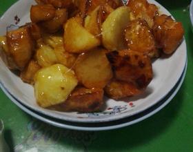 最后锅内放水,放入三大勺糖,熬成蜜糖色,在放入地瓜,翻炒,出锅