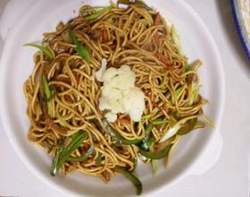 鸡蛋炒熟放一旁!下底油,将洋葱,青椒,萝卜煸炒断生,加面酱!老抽少许!继续煸炒。之后下入面条,加盐糖少许在家蒜苗继续煸炒1-2分钟!即可!