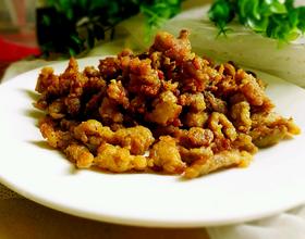 将肉放入面糊一起搅拌,使肉挂上面糊。