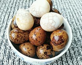 煮熟(5分钟就差不多了),捞起,倒入盆里,把蛋壳都颠破。