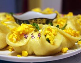 准备蛋黄煎熟切碎,放入蒸好的花瓣里,即可食用!