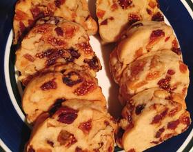 - 3. 然后将烤好的核桃稍微切碎,加入果干搅拌均匀放旁备用