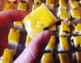 用刀切成小方块,并在表面刷上蛋黄液。