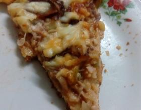 - 1. 面发好后,铺在披萨盘内。再醒二十分钟。在饼皮中间放上披萨酱。饼的边缘涂上,全蛋液。