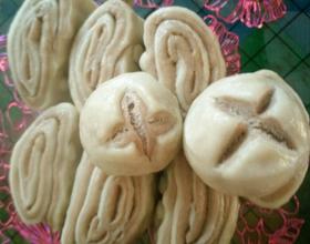 揉一会放置五分钟,然后擀好两种面叠在一起