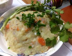 将土豆及胡萝卜切薄片,放蒸锅蒸15~20分钟
