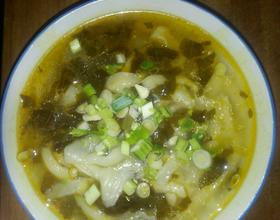 锅中放入植物油,煸炒姜丝、干辣椒、葱段、辣椒酱倒入酸菜,煮沸腾,捞出!
