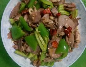 放入尖椒,盐,酱油,鸡精蒜,翻炒几下出锅