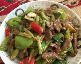 热锅热油,先爆香牛肉,起锅,倒入油,放入姜蒜爆香,倒入牛肉,翻炒,再加入芹菜,翻炒,加入少许料酒,糖,盐和生抽断生装盘