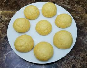 将发酵好的面团揉松排气,分成均匀不等的几个小几子,我的配方大概是十个左右的大小。我用的是包雪媚娘的模具,把小几子搓圆放进模具,然后中间按至凹陷,再倒出,这样就是很圆的半圆了。