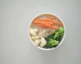 下入面条再次滚锅加入花菜,胡萝卜丝煮3分钟