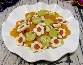 2、根据个人口味增减胡萝卜、黄瓜、魔芋梅花的份量和比例。