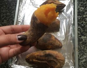 将红薯翻个面,如上温度,再烤20分钟左右。