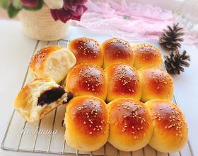 黄油用的*无盐黄油,成品面包非常好吃。馅料也可以做成蜜豆馅的,表面撒杏仁片装饰也很好吃。面包表面刷蛋液的时候刷子先在碗边荡一下,这样轻刷蛋液烤出的成品面包外观颜色漂亮。