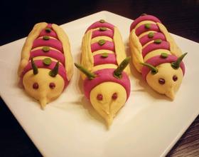 - 11. 装上翅膀,用绿色面搓细,做成小圆点粘在背上,在用绿色面搓细做蜜蜂的触角。放二十分钟,放在蒸屉蒸十五分钟关火,五分钟后打开盖子,鲜艳美丽的小蜜蜂出锅了
