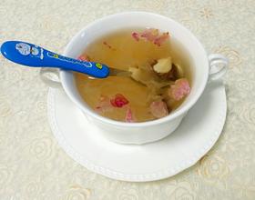 浸泡4小时后百合与银耳一同下锅,大火烧开,关至小火