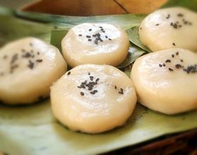 1.糯米粉很黏,一定加蒲叶,不然会和蒸笼粘在一起。