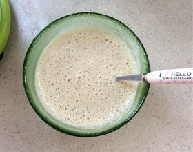 1,楼下没有豆浆卖,又非常喜欢喝,所以自己动手做了。简单营养一起动起来吧!我用的土黄豆,婆婆种的。也可以去超市买很方便。2,泡发的黄豆先煮熟是为了减少豆渣,榨完就可以喝了。不用再另外煮开了。3,我是用榨汁机代替豆浆机做的奶昔,喜欢水豆浆的可以先榨过滤掉豆渣再放锅里煮熟就可以喝鲜豆浆了。