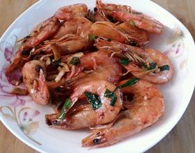 待大虾煸干水分,出香味时,放入葱姜蒜煸香。