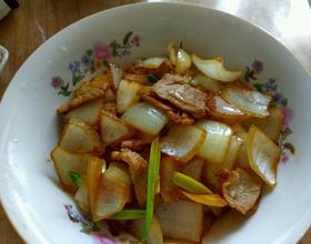 加入洋葱翻炒,加盐酱油。出锅前加点味精。