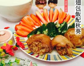 米饭盛出,捏成小球…塞进腌制好的鸡翅中…