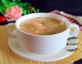 锅内加入清水,放入胡萝卜丁和虾仁煮开。