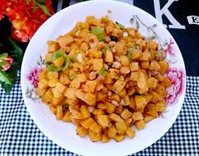 快速翻炒,因为窝窝头是熟的,几秒钟就可以啦。