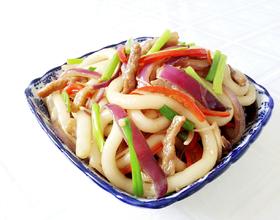 葱姜蒜切丝,红椒切丝!洋葱切丝!