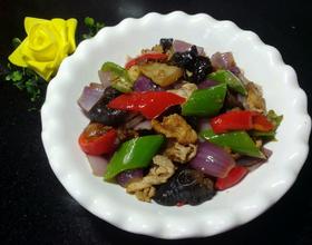 瘦肉微微变色未完全熟时,将所有食材一起翻炒,加盐,鸡精,生抽,炒匀出锅。