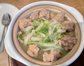锅烧水开了下入所有丸子,烧开。打去浮沫。加入白菜,忘拍照片了。加入适量盐。