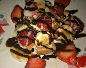 - 8. 淋上炼乳,和巧克力酱,形成网状。上面也可以放薄荷叶点缀,我没有,哈哈。