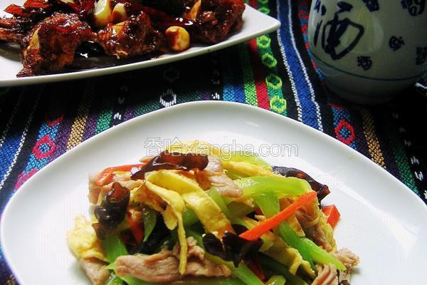 2.莴笋、胡萝卜、黑木耳洗净分别切丝,鸡蛋打散,里脊肉洗净切丝。