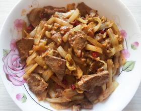 放入猪肝 干辣椒 大火炒到猪肝变色盛出备用