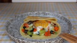 大家可以根据自己的口味选择蔬菜,可以放一些培根,用黄油炒菜会更香。煎饼一定要用平底不粘锅和小火。我喜欢吃半生蛋黄,如果不喜欢的话,可以盖上锅盖,焖熟蛋黄