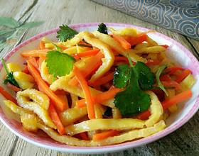 - 12. 锅中油热,倒入胡萝卜丝翻炒一会