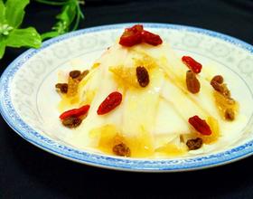 装盘,撒上枸杞和葡萄干,浇上蜂蜜。