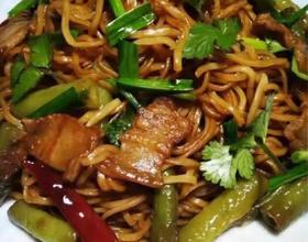 把蒸好的面条放入锅中给它搅拌一下,加入少许香油