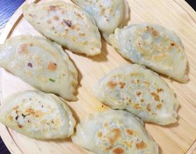 做了七个 锅里放些油 煎到金黄色 翻面继续煎成金黄色 然后加入没入盒子的三分之一的水淀粉 盖锅盖 小火三到五分钟 水分吸收完 晃动一下就可以了