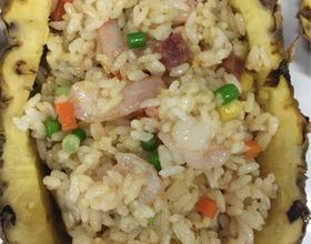 - 胡萝卜30克、洋葱30克、蒜苗30克、腊肠30克、鲜虾仁30克、菠萝30克