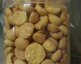 将搅拌好的面糊倒入裱花袋,挤出小圆形在烤盘锡纸上。