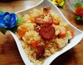 (1)炒制的时候不用炒熟噢,微微炒下就可以 (2)饭蒸好后焖十分钟是为了使米粒更入味,不那么湿,一粒粒的;刚蒸好锅内有很多水气,这时候急着打开米就会粘粘的,没有弹性