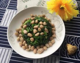 花生煮熟,菠菜焯水,然后都用凉开水过一下。