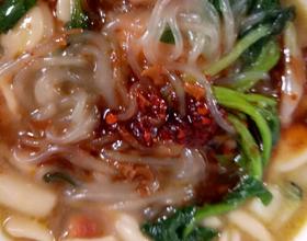 再加入麻食片,粉条,煮熟后加菠菜与韭菜再煮一会