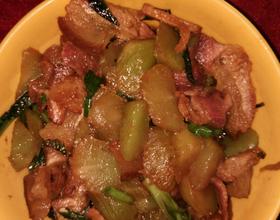 咸肉炒至油色已出,放入莴笋,继续大火翻炒5分钟