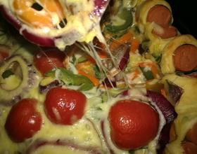 烤箱的温度可以根据自己家的烤箱来定,如果喜欢吃虾的话可以放一些虾,或者是放些培根。