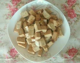 用料,豆腐洗净切成自己喜欢的大小。姜蒜切碎。