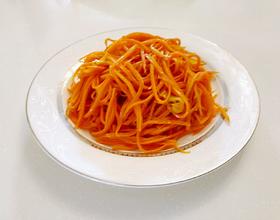 加一丁点开水可以使胡萝卜更快熟,而且还不粘锅。开水不能加太多,否则就会变成水煮胡萝卜了。