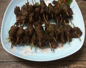 然后把所有串好的瘦肉放到锅里炸,炸至金黄色捞出控油即可!
