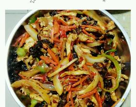 余下的油炒切好的各种丝,颜色鲜艳大约两分钟即可出锅备用